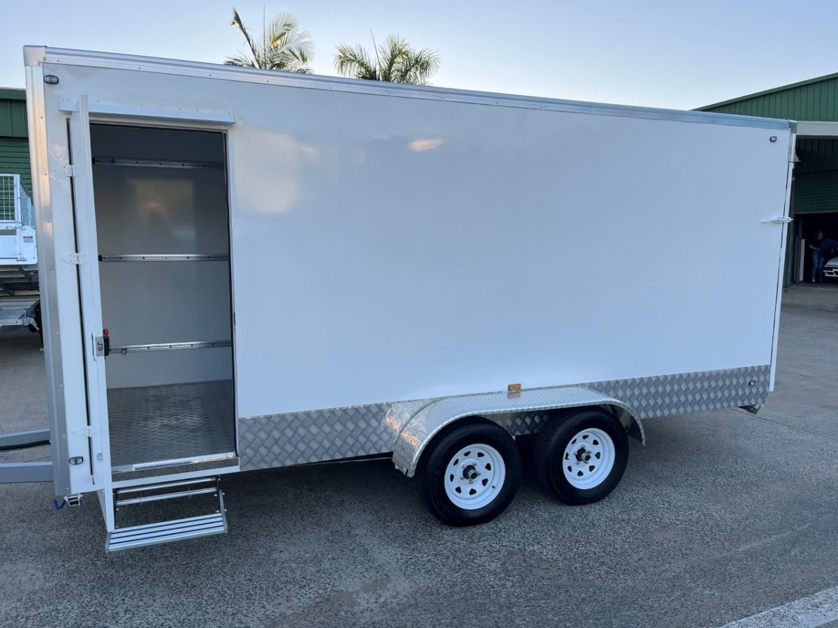 This new fully enclosed trailer is available for immediate sale. Trailer dimensions, 4800mm long by 1800 mm wide internally and clearance height inside 1950 mm.
