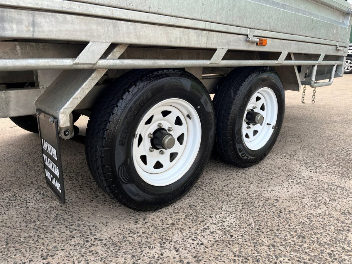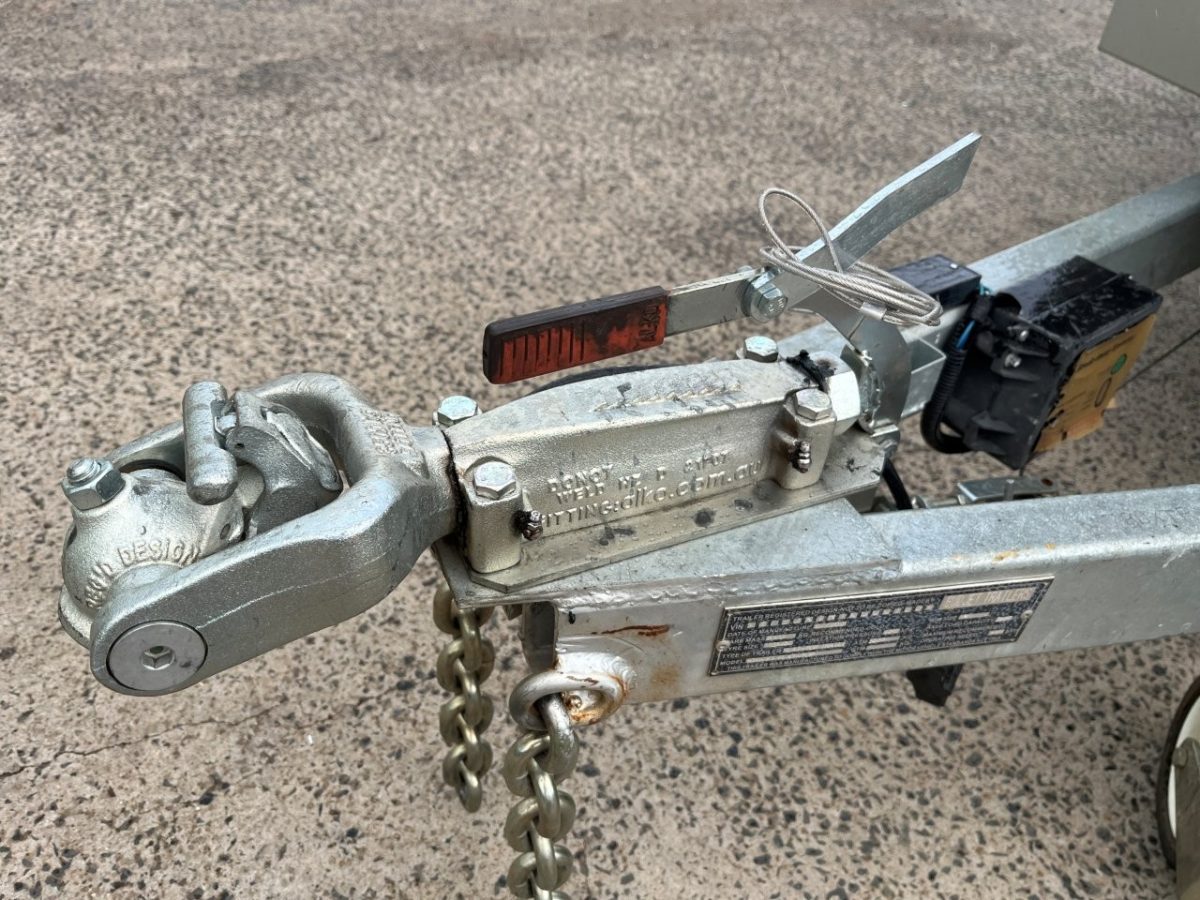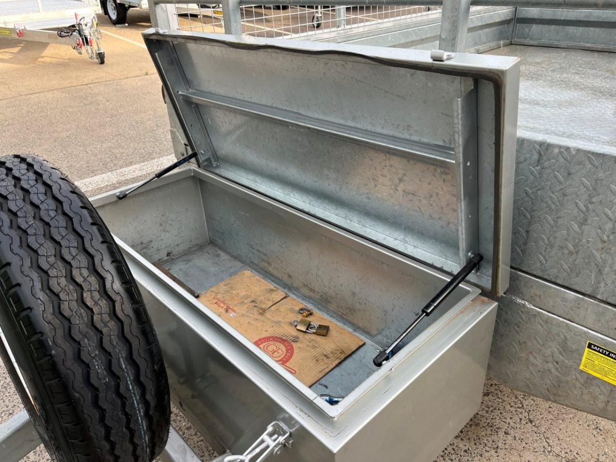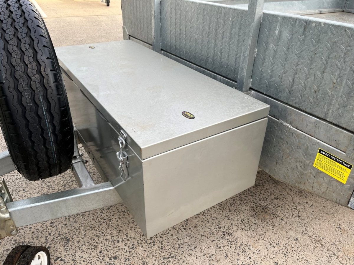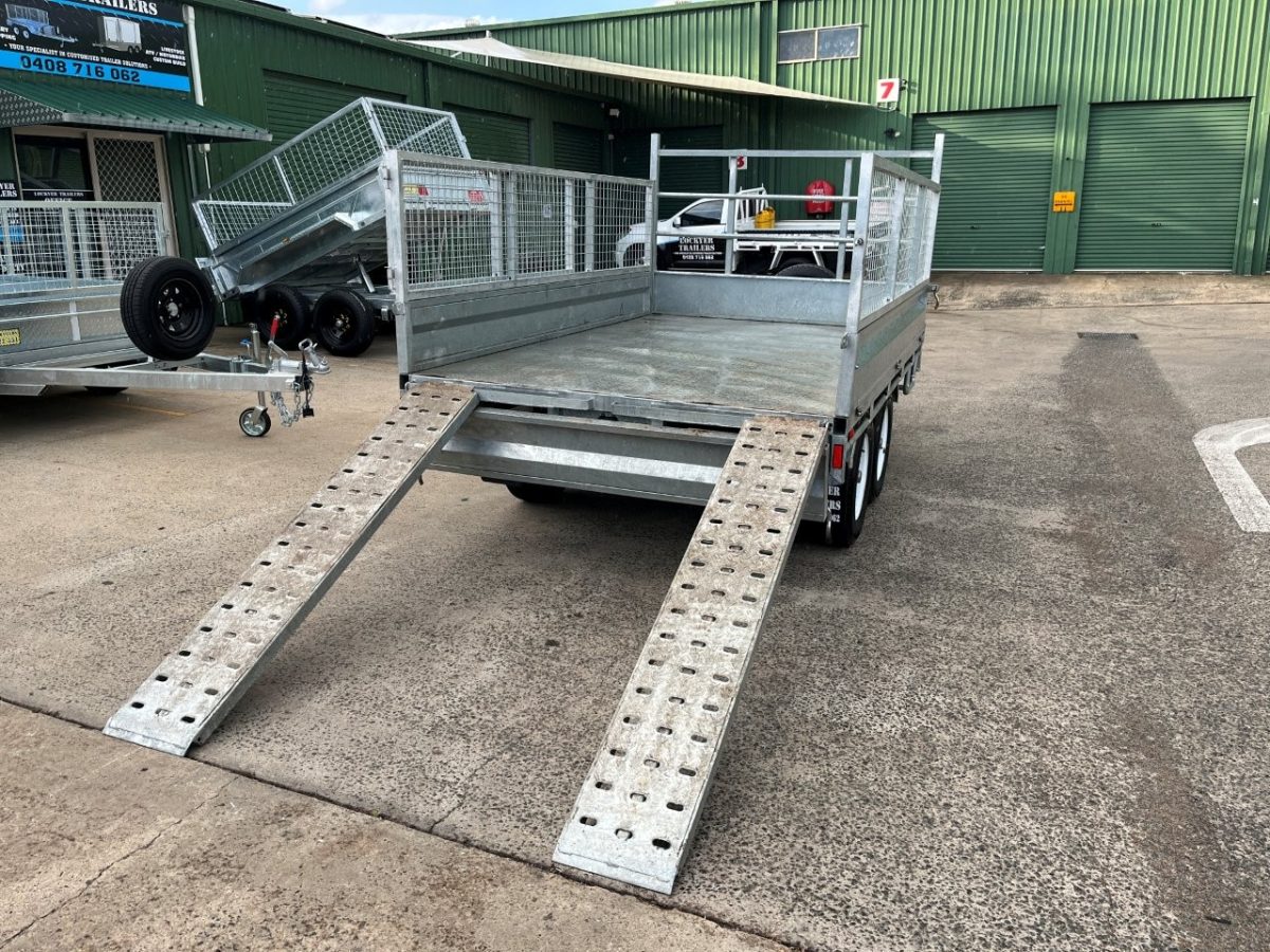 Included is large very high quality steel lockable toolbox, Ark 750 Extreme twin wheel jockey wheel, 360° off road 3.5 ton tow coupling, hinged down sides and tailgate, removable 600 mm cage, removable 1200 mm headboard, 2 x extra heavy duty loading ramps housed underneath trailer deck and able to be positioned anywhere along the rear of the trailer for loading of a variety of equipment and machinery. Trailer has a payload of 2610 kg and a total ATM of 3500 kg. Equipped with 12 inch electric brakes all four wheels, safety breakaway, 9 leaf roller rocker spring set rated at 4.5 ton capacity and Japanese Dexter bearings. This trailer has now been serviced and is ready for immediate sale. Comes with Queensland registration, registered until 19 May 2026.